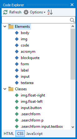 Code Explorer enables you to quickly navigate between the most important places in your HTML, CSS and JavaScript files