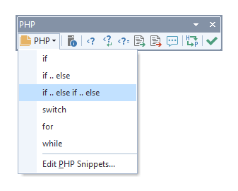 Some essential PHP code fragments and tools are available from PHP toolbar.