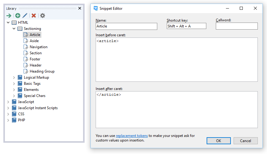 You can use Code Library to collect frequently used pieces of code so you can reuse them later and save your time. It already comes filled with some useful code snippets.