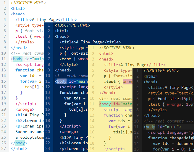 You can switch between color schemes or create your own editor theme. Editor is shipped with some interesting color schemes, including Solarized.